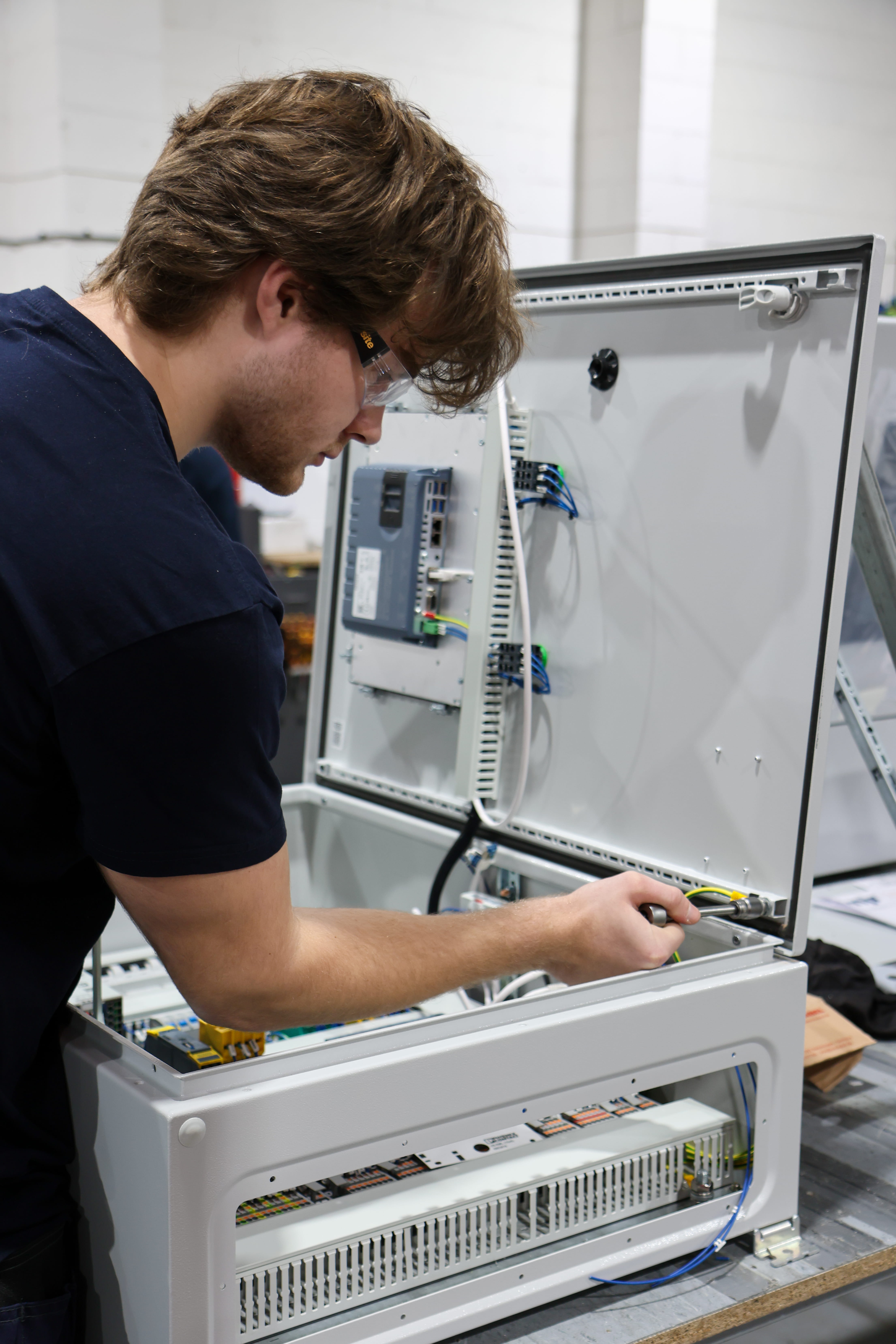 After a conversation with Debbie, Head of Projects, an apprenticeship emerged as the natural next step. Since then, Finlay has thrown himself into the programme, working alongside engineers Graham and Ray, getting involved in a wide range of projects, and currently building control panels.